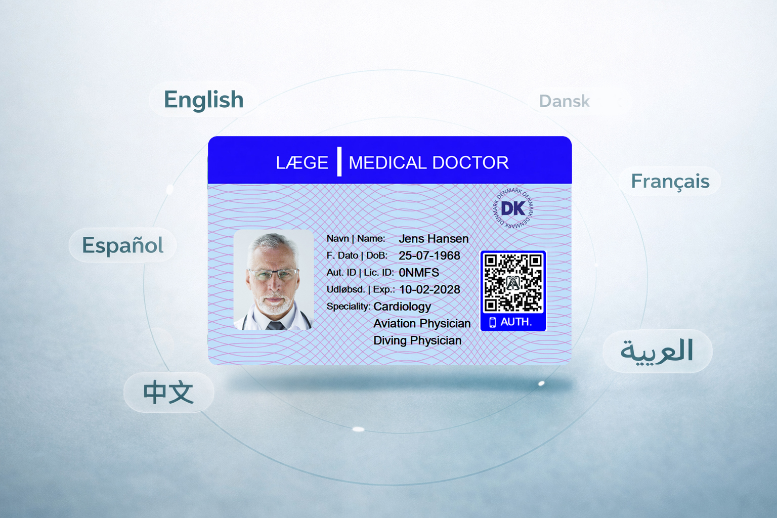 Designet til at give danske læger en pålidelig og verificerbar legitimation, der let kan fremvises i professionelle og kliniske sammenhænge.